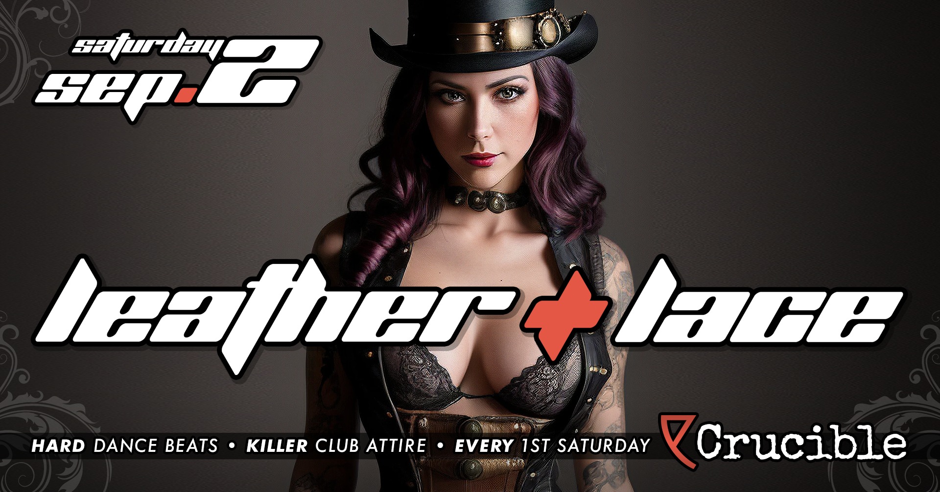 Saturday, September 2nd Leather + Lace returns to Crucible, featuring the best hard dance beats and encouraging killer club attire!
