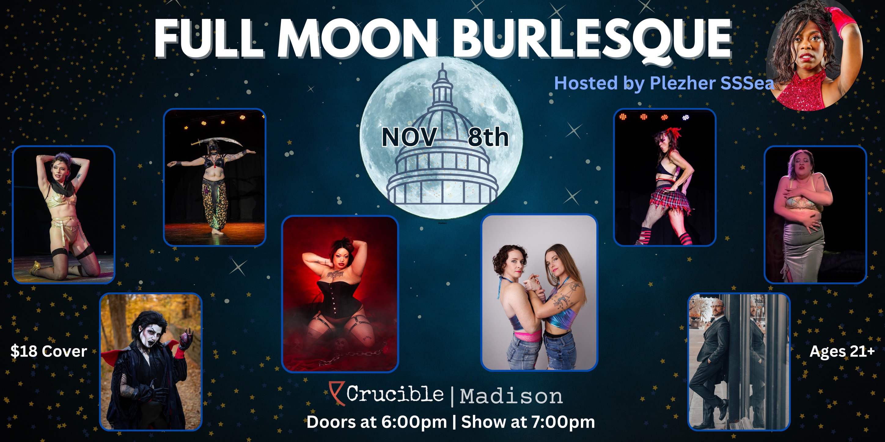 Join Full Moon as we showcase a different cast of performers on second Saturdays of the month at Crucible (Madison). Doors at 6pm. Show at 7pm. $18 cover at the door. Tipping encouraged. 21+ event.
