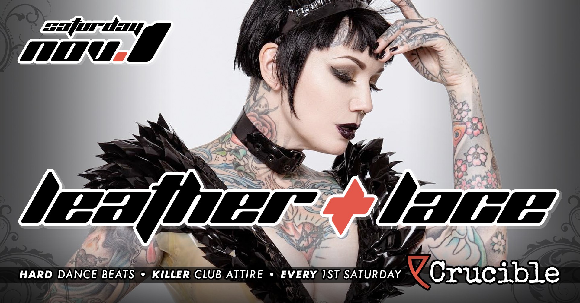 Saturday, November 1st Lace + Leather returns to Crucible, featuring the best hard dance beats and encouraging killer club attire!