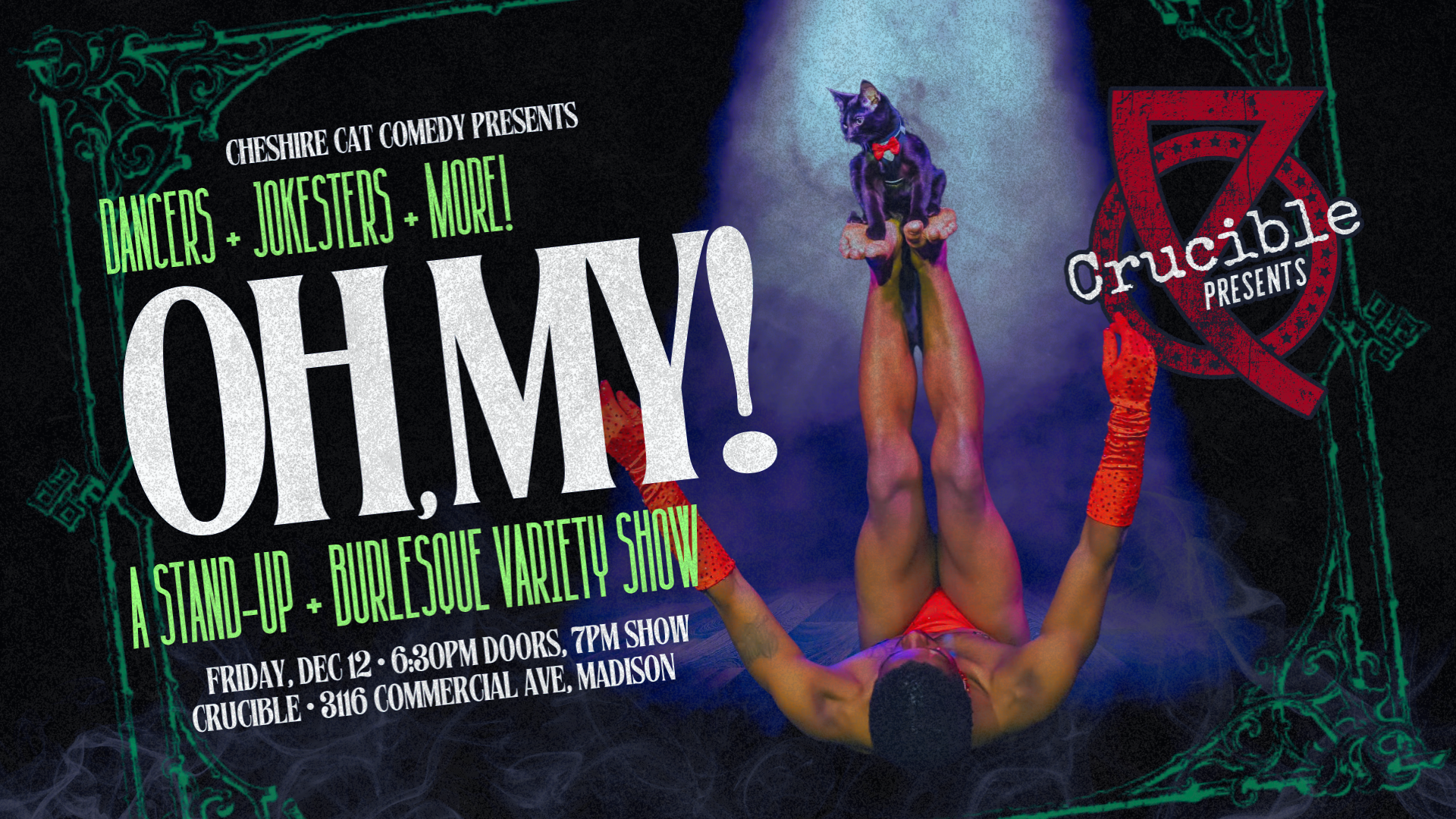 Crucible Madison and Cheshire Cat Comedy present Oh, My! A Stand-Up + Burlesque Variety Show! Featuring hilarious and saucy acts from all across the Midwest including stand-up, musical comedy, jaw-dropping contortionism, and a burlesque number involving a cat named God.