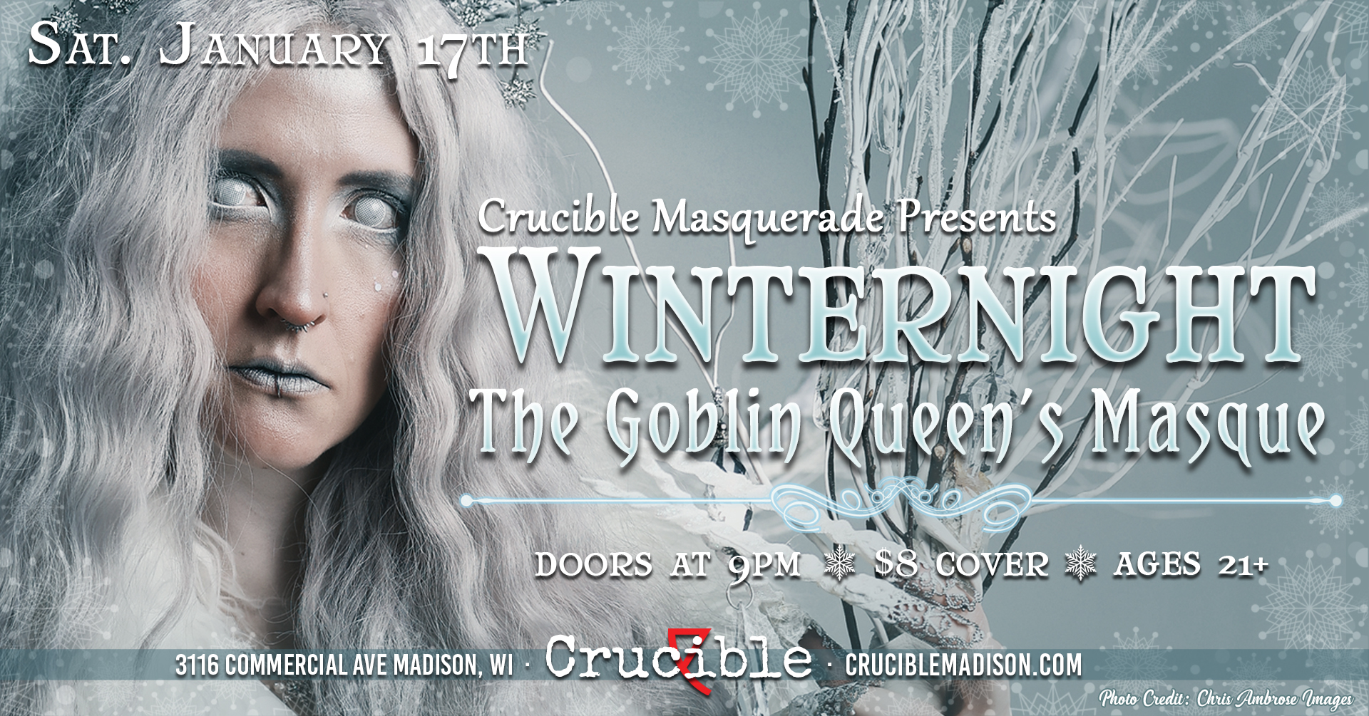 The Dread Queen of Winter commands you attend! Winternight is our lavish annual winter dark faerie masquerade ball, an evening of mischief, elegance, and a perhaps a tantalizing whisper of danger. Prepare yourselves for a surfeit of dancing, debauchery, and delight!