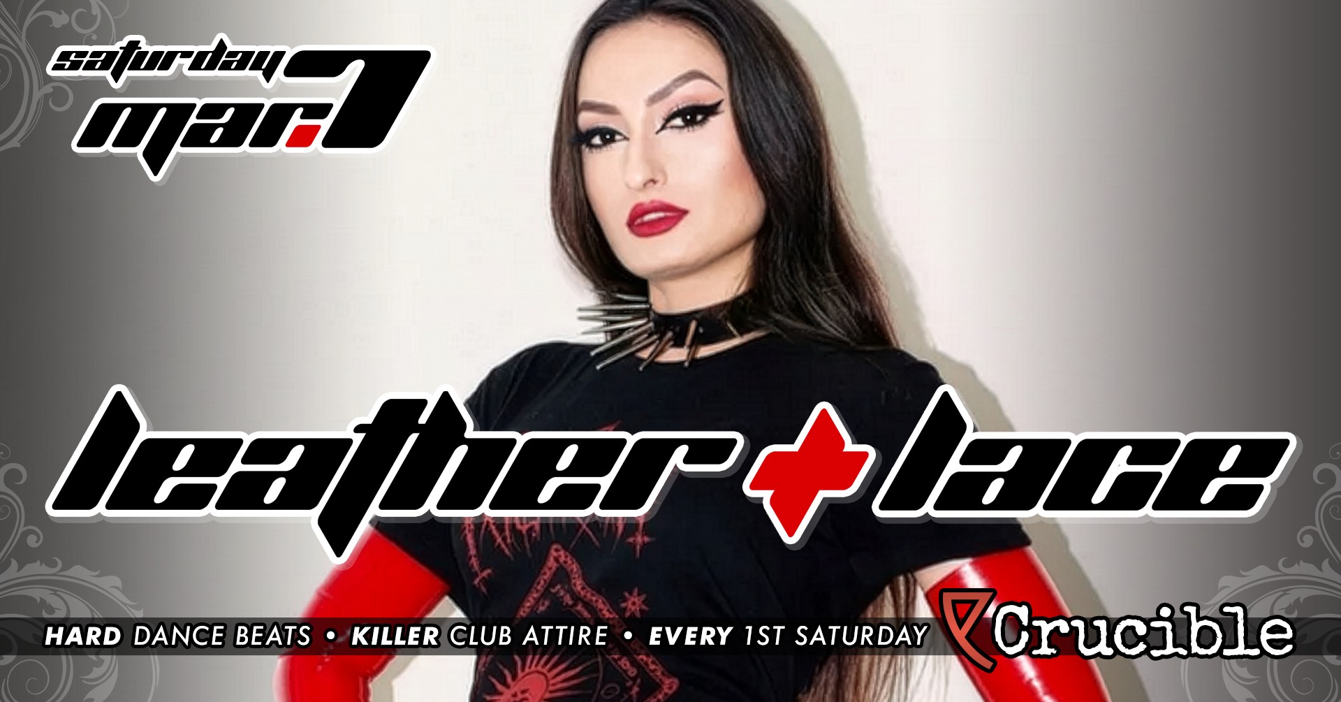 Saturday, March 7th Lace + Leather returns to Crucible, featuring the best hard dance beats and encouraging killer club attire!
