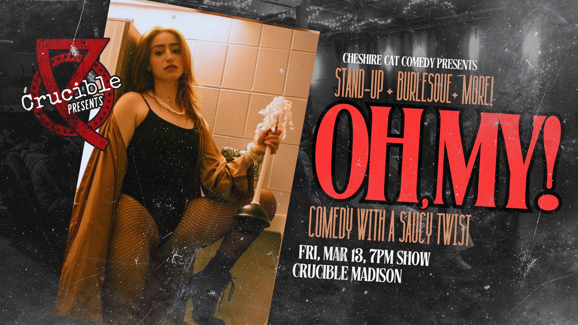 Crucible Madison and Cheshire Cat Comedy present Oh, My! A Stand-Up + Burlesque Variety Show. Featuring hilarious and saucy acts from across the Midwest!