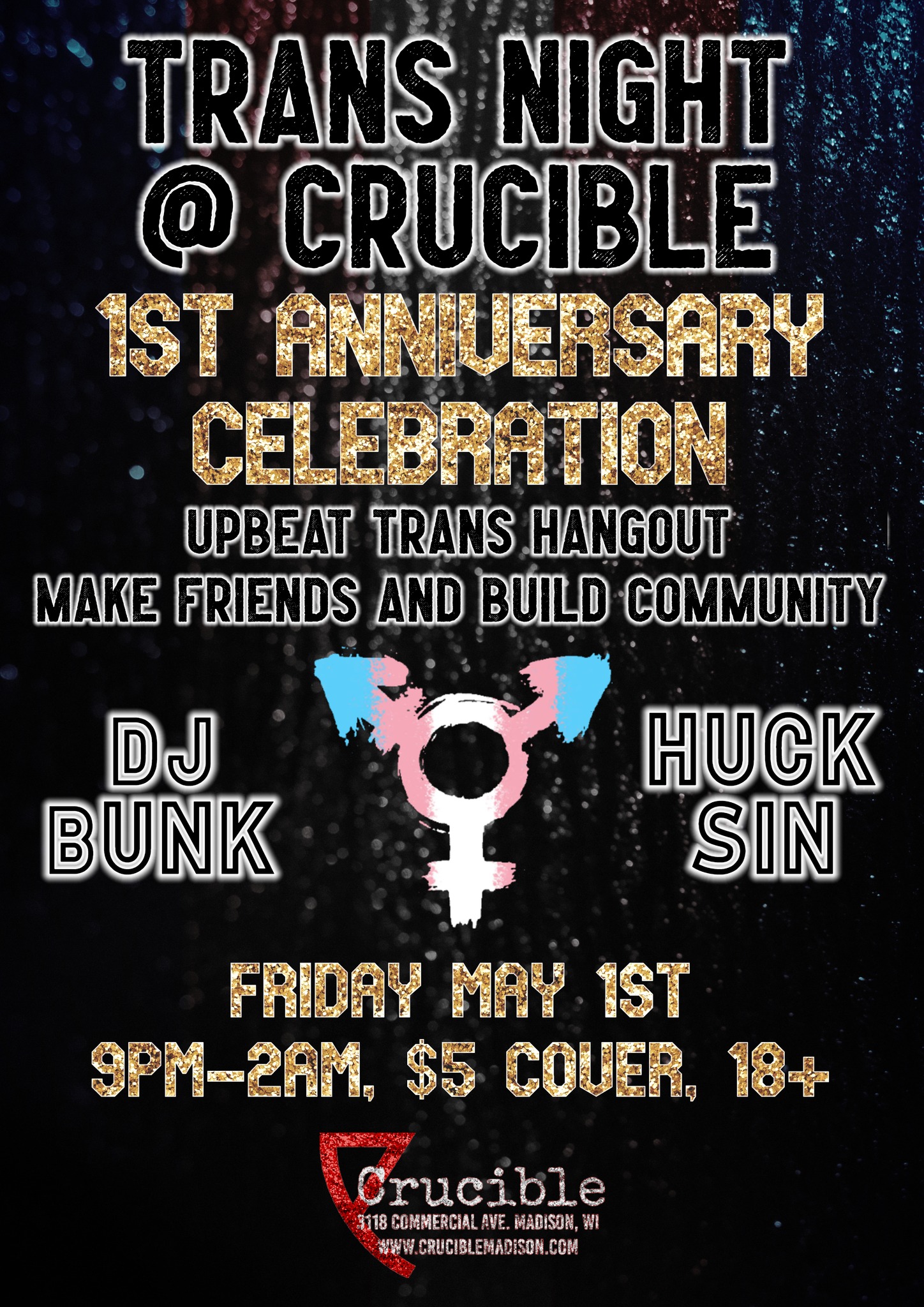 Fri 5/1 9:00pm Doors: 9:00 PM $5 21+ Come out, be yourself, and DANCE! DJ Bunk and DJ Huck Sin will fire up the dance floor all night long! $5, 18+, 9:00 PM Add to Google Calendar Add to iCal